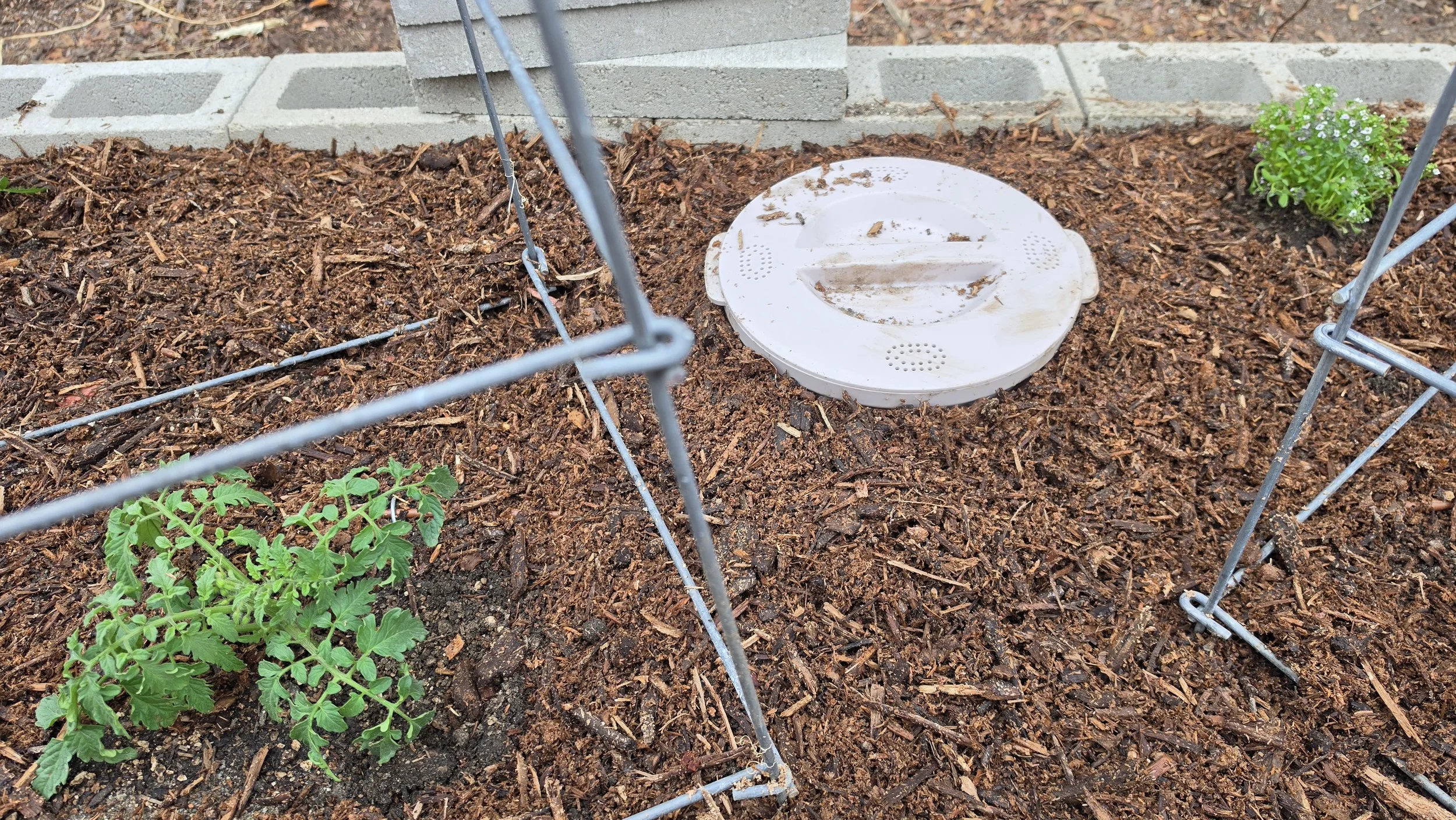 The bed I described above is a genuine experiment. I have marigolds, alyssum, borage, worm bins, drip irrigation, winecap mushrooms, and four tomato varieties all sharing the same space — and I have absolutely no idea how all of those relationships are going to play out.