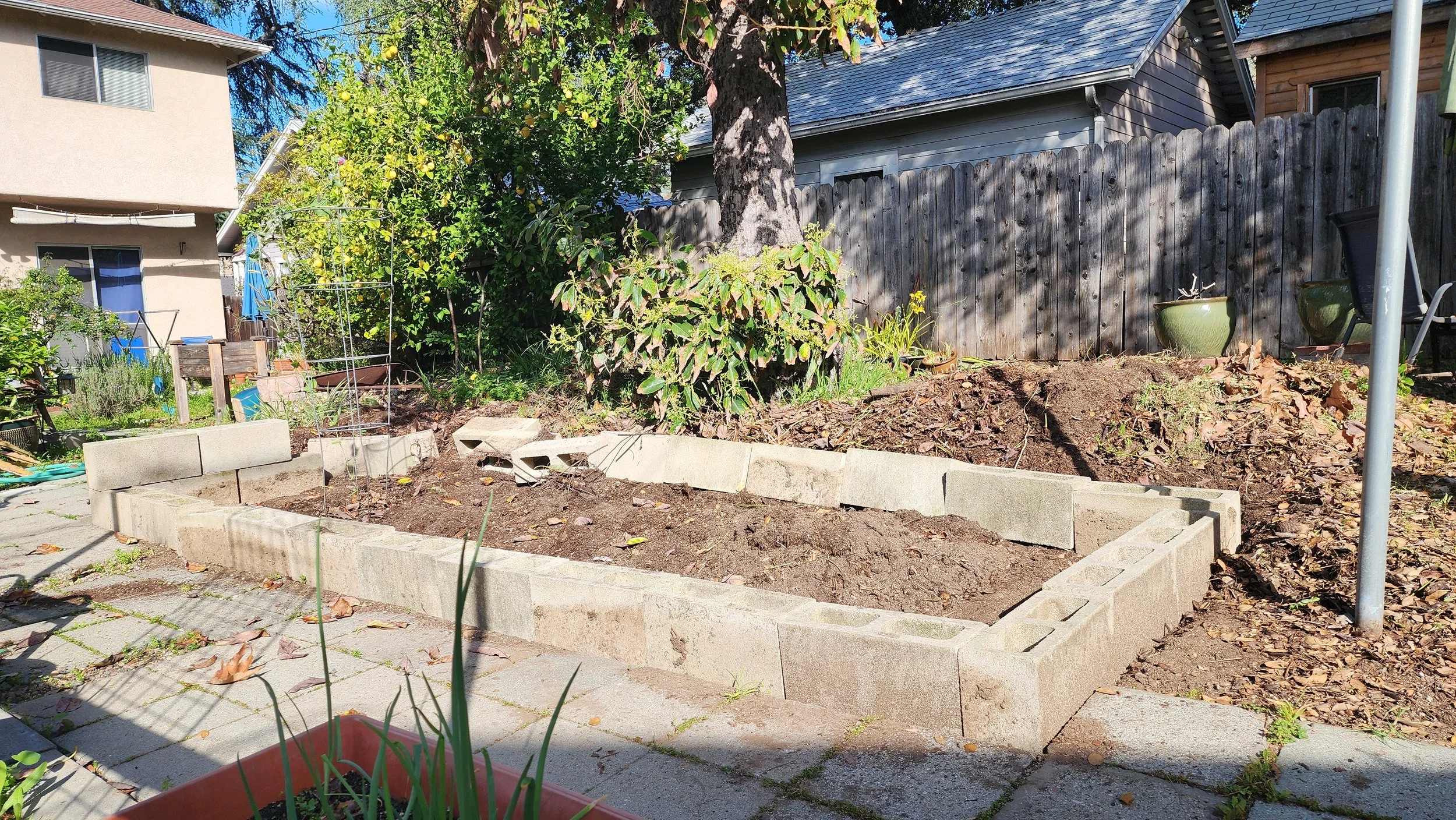 I also know that once the avocado tree comes down in the coming weeks, I'll need to tweak the layout again. And down the road, as the roots decompose, there may be some settling.